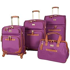 Steve Madden Designer Luggage Collection – 4 Piece Softside Expandable Lightweight Spinner Suitcase Set – Travel Set includes a Tote Bag, 20-Inch Carry on, 24 & 28 Inch Checked Suitcases (Purple)