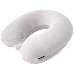 Brookstone Travel Neck Pillow – Classic Memory Foam Head and Neck Pillow for Vacations, Airplanes, Trains, Buses, and Cars, Grey