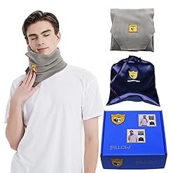 FOXSEON Travel Pillow, Turtleneck Airplane Neck Pillow, Support Office nap Pillow for Men, Easy to Clean and Carry, Gift Pack (Gray)