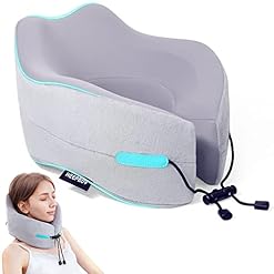 KEEPMOV Memory Foam Airplane Pillow with 360-Degree Head Support for for Airplane Sleeping| Portable Adjustable Travel Neck Pillow for Car & Train Bus