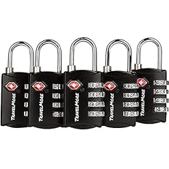 5 Pack TSA Luggage Locks with 4 Digit Combination – Heavy Duty Set Your Own Padlocks for Travel, Baggage, Suitcases & Backpacks – Black