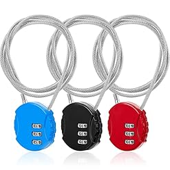 3 Pieces Cable Luggage Locks 3 Digit Combination Locks Combo Locks Wire Stroller Locks TSA Approved Padlocks for Travel Bike Backpack Cabinet, 30 Inch Wirerope (Black,Blue,Red)
