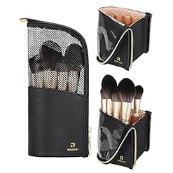 GOLIKEE Travel Makeup Brush Holder, Silicon Cosmetic Brush Bag Case with Zipper, Brushes No Fall Out, Soft and Portable Make Up Pouch Organizer for Travel