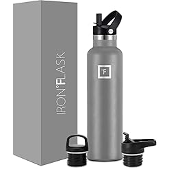 IRON °FLASK Sports Water Bottle – 24 Oz – 3 Lids (Narrow Straw Lid) Leak Proof Vacuum Insulated Stainless Steel – Hot & Cold Double Walled Insulated Thermos, Durable Metal Canteen