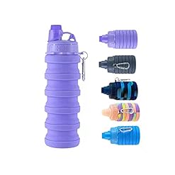 Collapsible Water Bottle Travel Water Bottle Portable Hiking Water Bottle with Leak proof Twist Cap 500ML Reusable BPA Free Silicone Water Bottles (Style1, Purple)