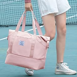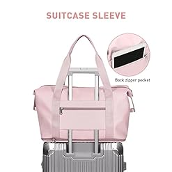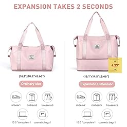 Large Travel Tote Bag, Waterproof Expandable Duffel Gym Tote Bag,Weekender Carry On Overnight Bags for Women with Trolley Sleeve Wet Pocket,travel duffel bags,Pink