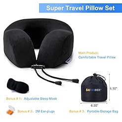 SAIREIDER Neck Pillows for Travel 100% Memory Foam Adjustable Travel Pillows with Storage Bag, Sleep Mask and Earplugs-Prevent The Heads from Falling Forward (Black)