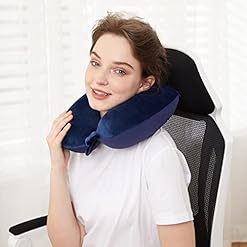 Travel Neck Pillow, Best Memory Foam Airplane Pillow for Head Support Soft Adjustable Pillow for Plane, Car & Home Recliner Use (Dark Blue)
