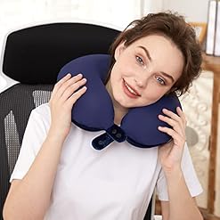 【LIGHTWEIGHT COMPACT BAG AND SNAP-ON LOOP】100% Pure Memory Foam Neck Airplane Pillow can easy to compress in a compact bag. Don’t worry about travel pillow taking up valuable space in your carry-on. Our super easy, heavy duty snap-on loop of the pillow attaches to backpacks, luggage, or just about anything you might carry on.