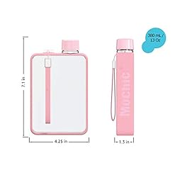 Mochic 13oz Flat Portable Travel Mug Handbag Slim Cold Flask | BPA Free A5 Water Bottle Tritan Plastic | Sports, Camping, Gym, Fitness, Outdoor – Leak Proof. 380ml (Pink)